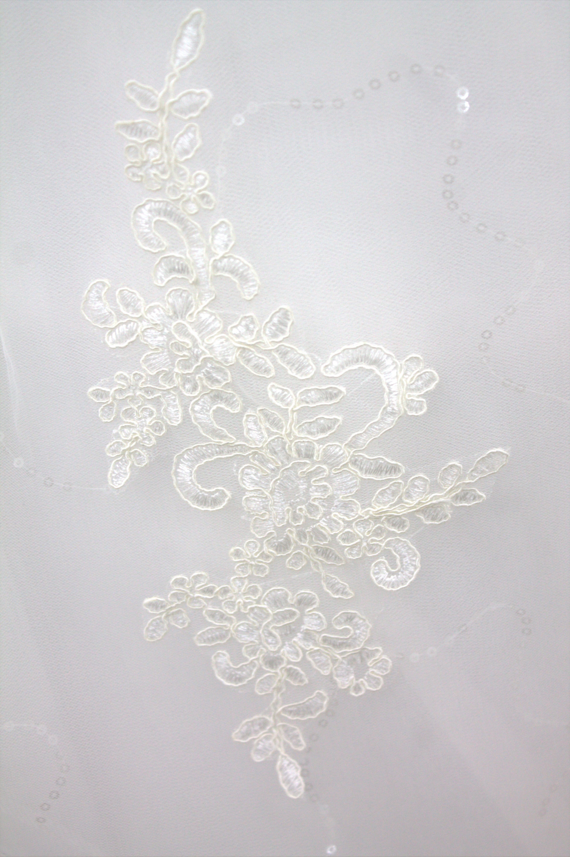 ✔ Bodice: Floral lace appliqués that enhance texture and elegance