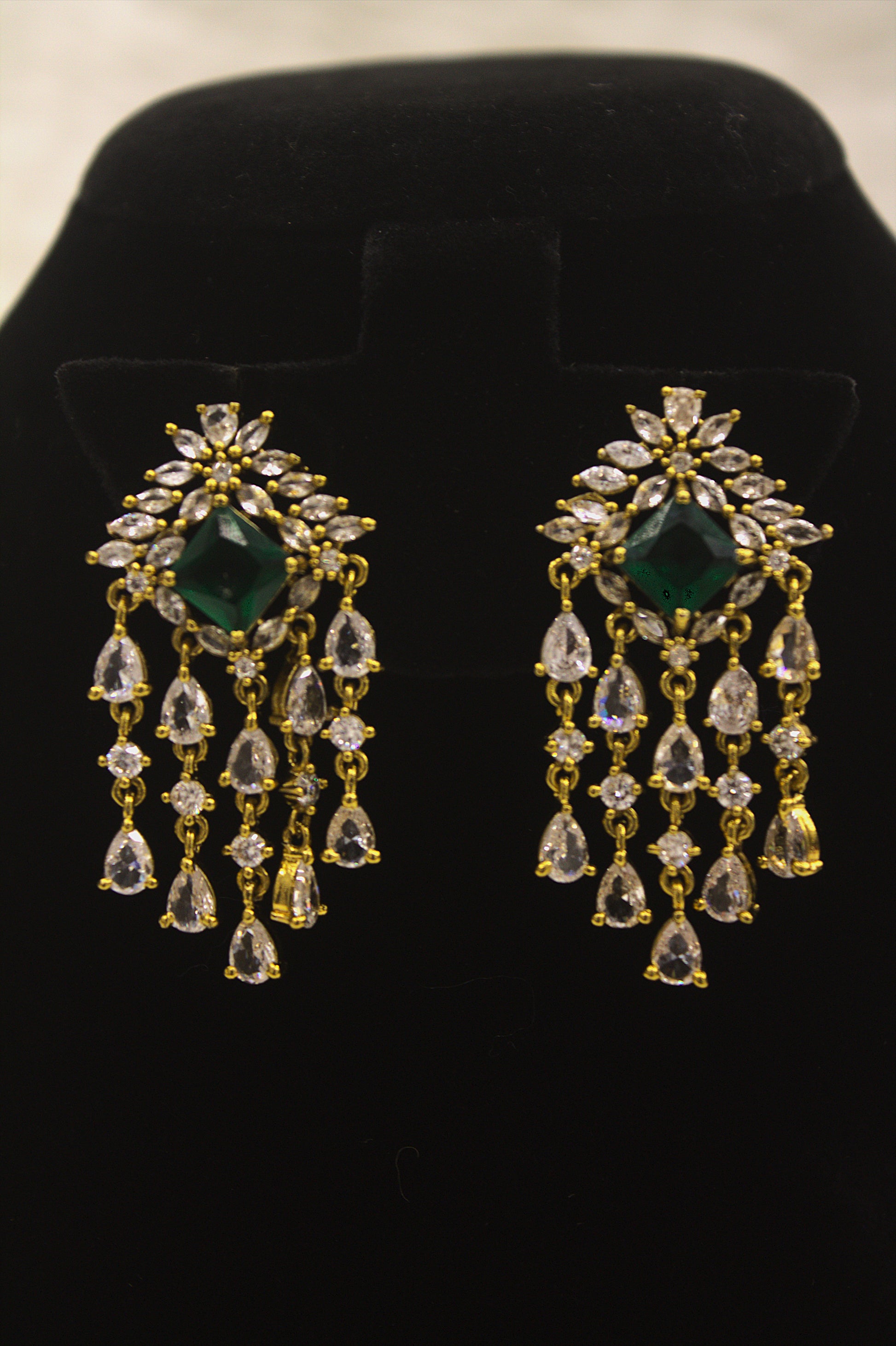 "Emerald Green & CZ Chandelier Necklace Set – Grand Bridal Jewelry with Earrings" Product code-6031
