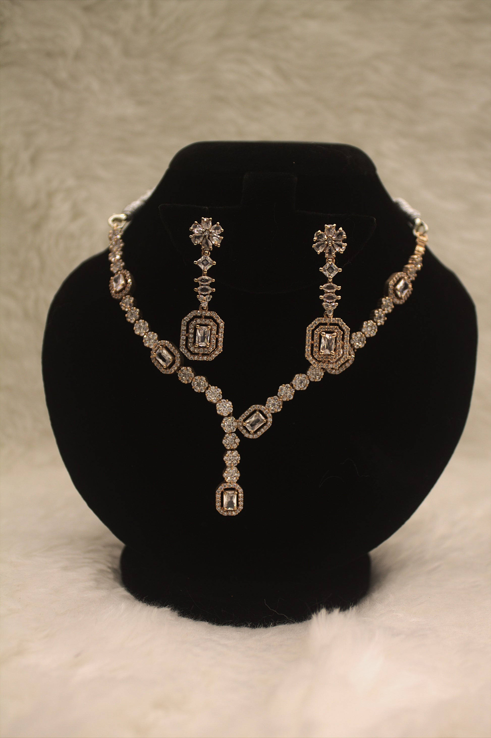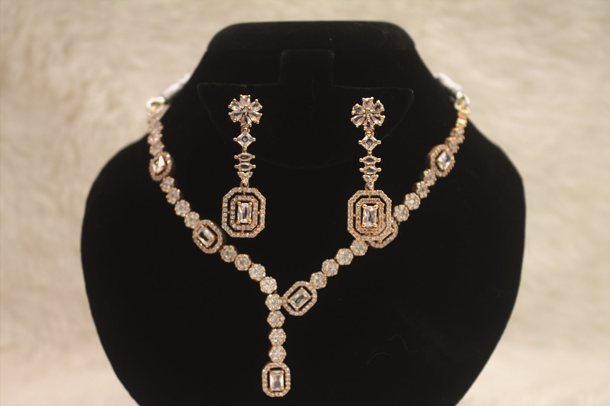 "Radiant Crystal Geometric Necklace & Earring Set" Product code-6048