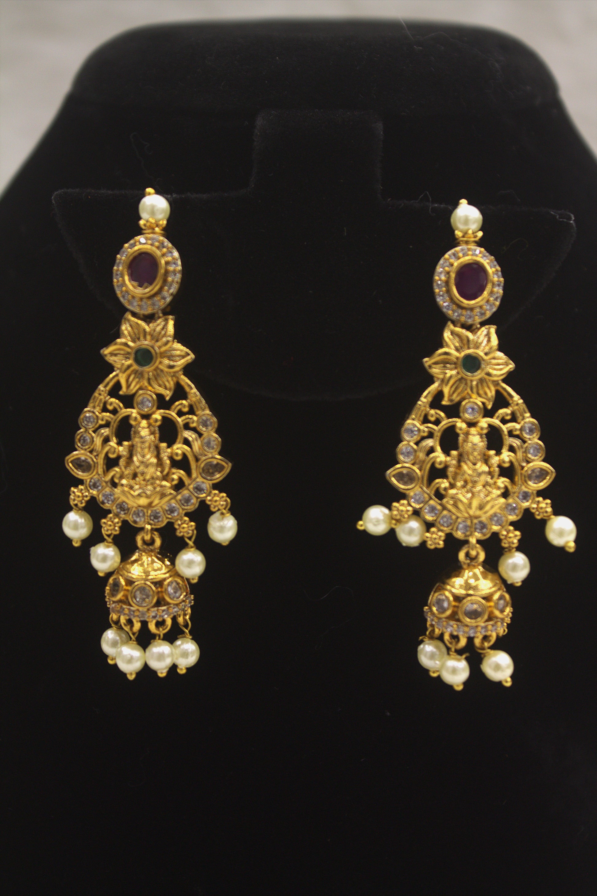"Regal Temple Gold Necklace & Earring Set with Pearls" Product code-6017