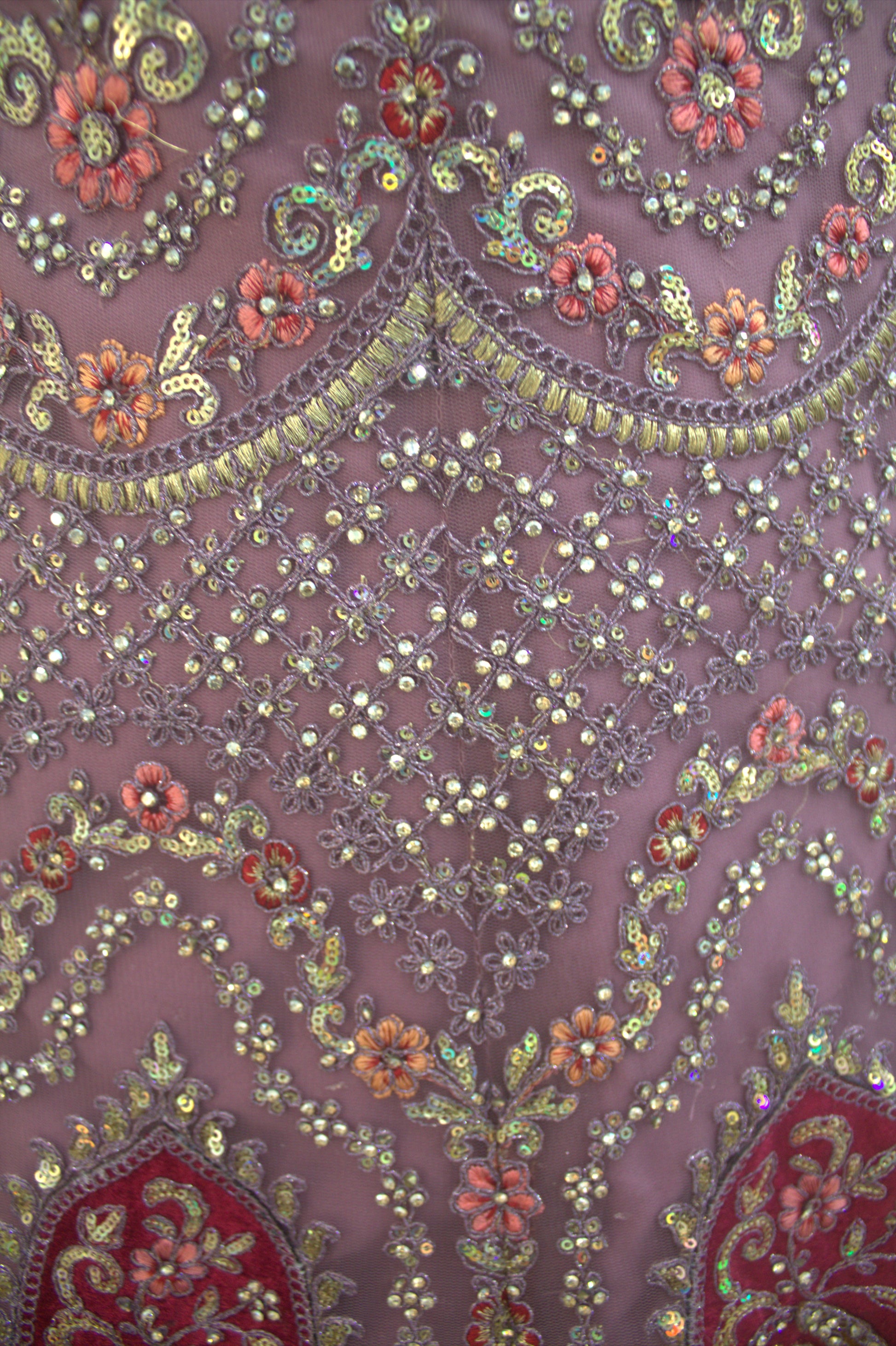 ✔ Ornate paisley motifs with zari, sequins & thread embroidery